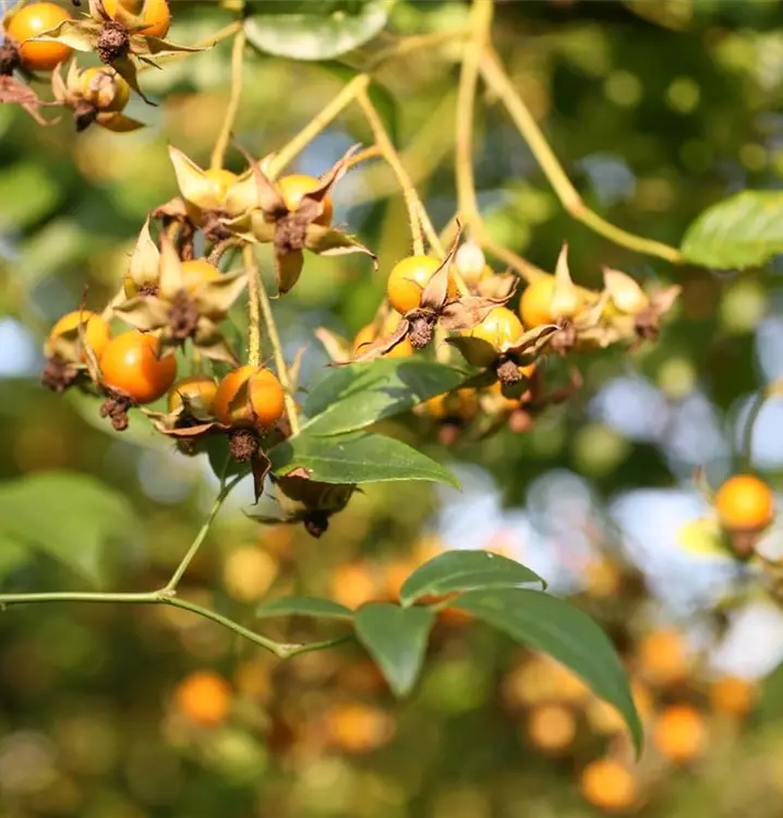 Die Kletterrose Rosa Polyantha Grandiflora begeistert mit einer Fülle cremefarbener Blüten, die in grossen, lockeren Dolden erscheinen. Ihre einfachen, eleganten Blüten mit goldgelben Staubgefässen verleihen Pergolen, Rosenbögen oder alten Bäumen eine besonders natürliche und romantische Ausstrahlung. Während der Hauptblüte im Frühsommer verwandelt sie grosse Gartenbereiche in ein beeindruckendes Blütenmeer.