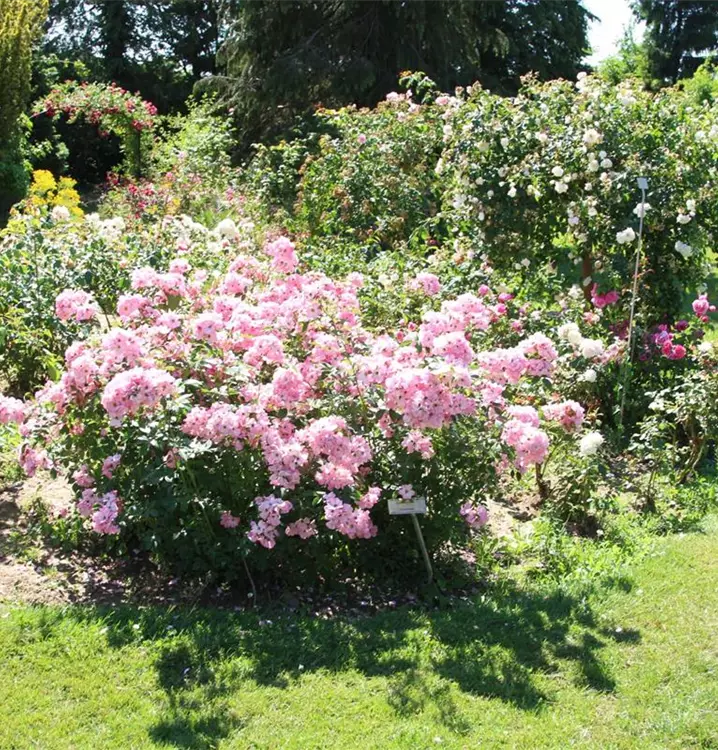Die Strauchrose Bipontina 650® überzeugt mit zahlreichen kleinen bis mittelgrossen Blüten in zartem Rosa mit heller Mitte. Die Blüten erscheinen in grossen, üppigen Dolden und sorgen während der ganzen Saison für eine besonders reiche Blütenpracht. Durch ihre natürliche Ausstrahlung eignet sich diese Sorte ideal für naturnahe Gärten, lockere Pflanzungen oder als blühende Strukturpflanze.