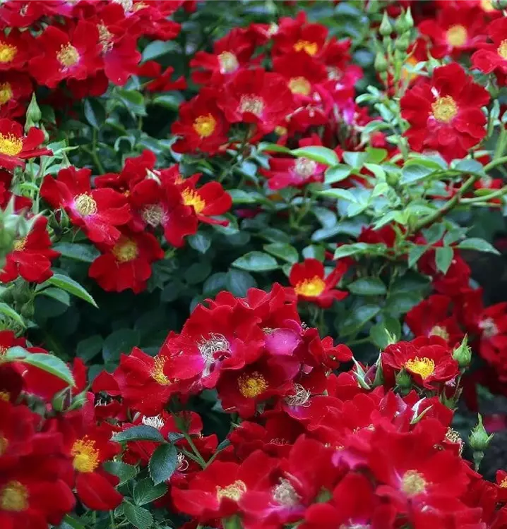 Blüte: leuchtend rot - 2 bis 4 cm Durchmesser - ungefüllt - Nachblüte schwächer.