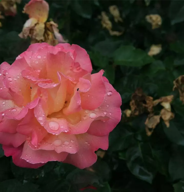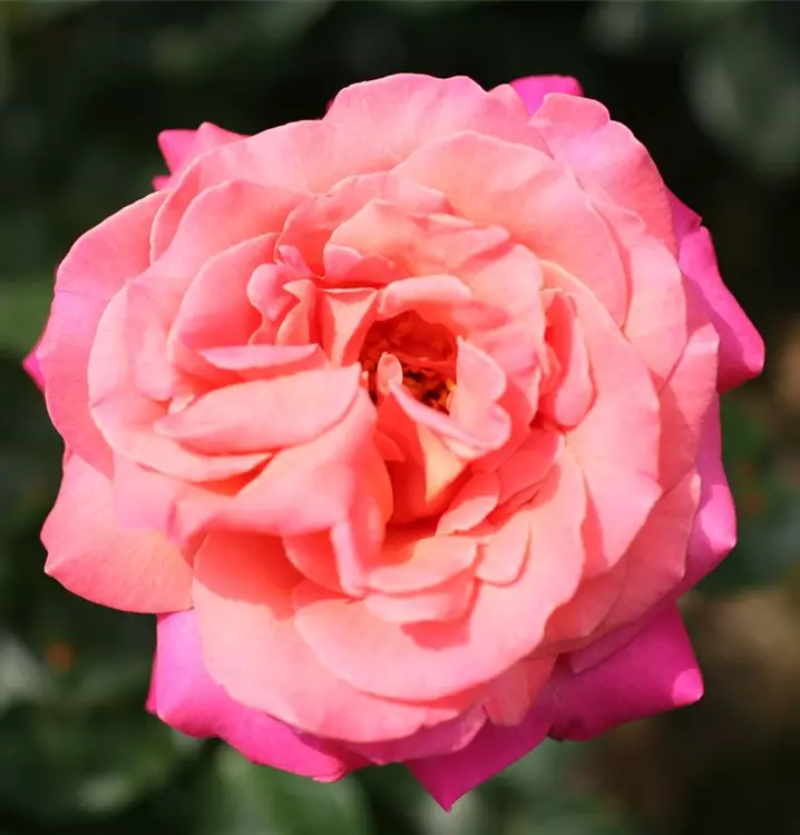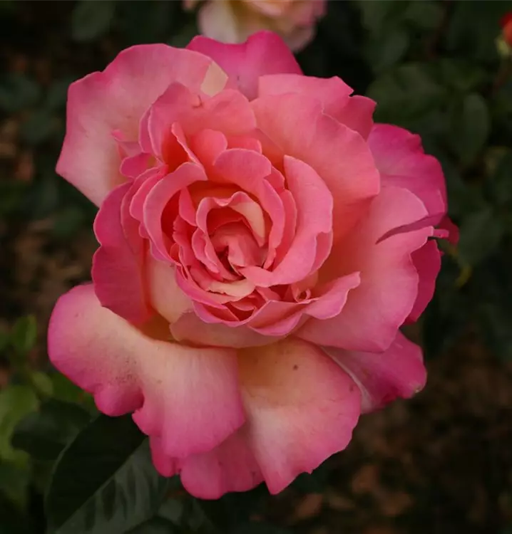 Mit ihren üppigen Blüten in Lachsrosa und zartem Gelb setzt diese Sorte romantische Akzente im Garten. Die eleganten Farbverläufe wirken besonders lebendig im Abendlicht – eine Rose, die warme Stimmung und Ruhe ausstrahlt.