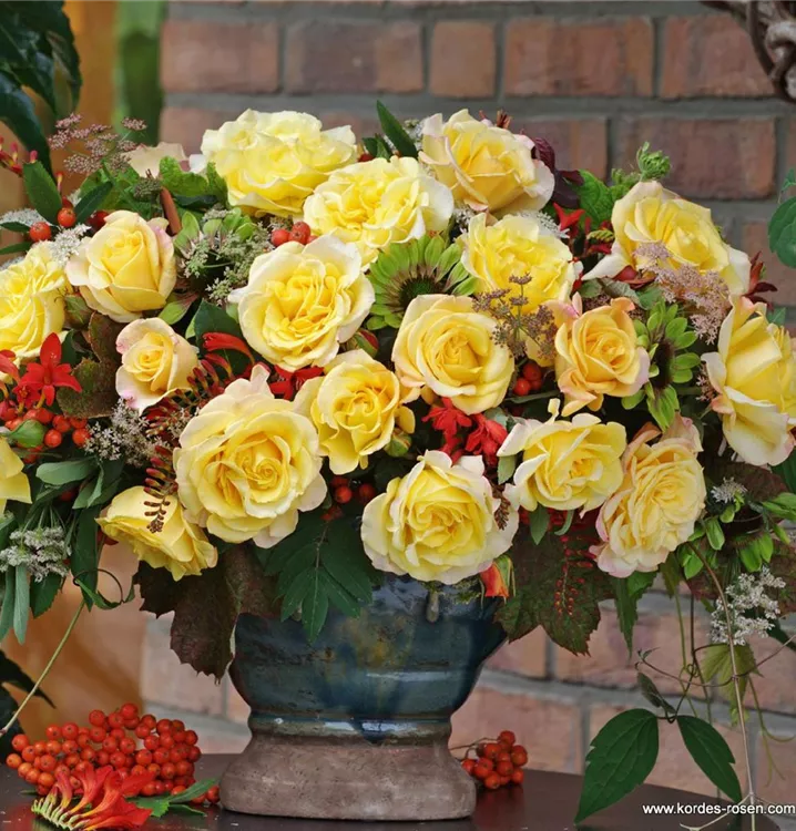 Duftnote: Kräftig wachsende und sehr gesunde Edelrose. Ihr zarter Duft und die sanft honiggelbe Farbe kommen auch für die Vase geschnitten ideal zur Geltung.