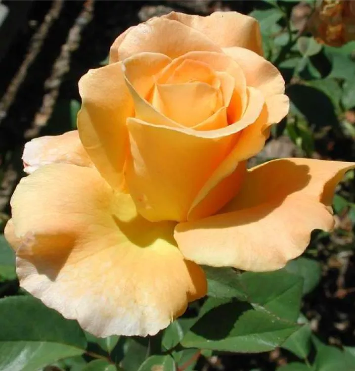 Blüte: gelb bis bronzefarbig – wohlgeformte Knospe – kräftiger Stiel – köstlicher Duft – Beet- und Schnittrose: Pflanze: schönes, im Austrieb rötliches Laub – gedrungener, gut verzweigter Wuchs – braucht Winterschutz – anspruchsvolle Rose – 60 cm hoch.