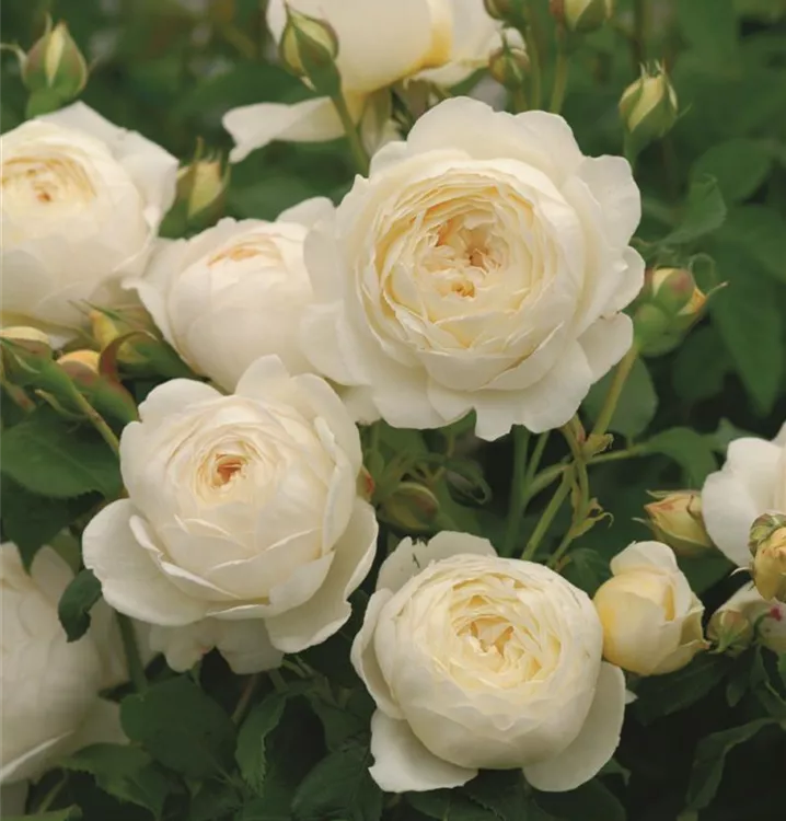 Pflanze: sattgrünes Laubwerk – buschig verzweigter Wuchs – dauerblühend – 3 Pflanzen/m² – 120 cm hoch - kann als Kletterrose verwendet werden (200 bis 250 cm)