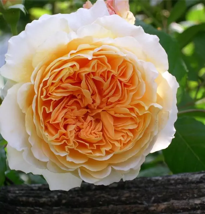 Blüte: apricot-orange – ziemlich grosse, hübsch geformte Rosetten – intensiver, fruchtiger Duft.