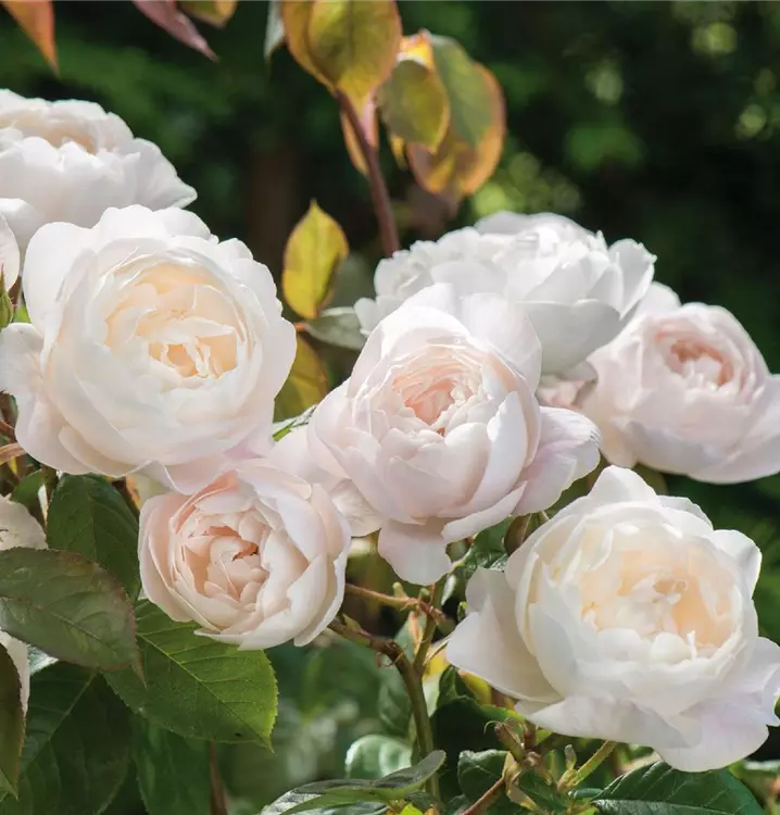 In der Morgensonne entfalten sich die reinweissen Blüten von 'Desdemona'® mit einem Hauch von Apricot im Zentrum – zart, elegant und voller Anmut. Diese Englische Rose ist wie geschaffen für romantische Gärten, duftende Beete und sinnliche Blütenarrangements. Ihr intensiver, myrrhenartiger Duft erfüllt die Luft und macht sie zu einer wahren Rosenpoesie für die Sinne.
