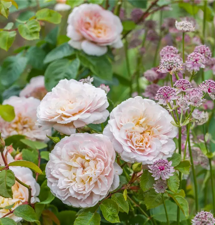 Von Juni bis in den Herbst hinein erfreut diese englische Rose mit einer Fülle an Blüten. Der Wuchs ist rundlich, kompakt und gleichmässig – ideal für Beete oder den Vordergrund grösserer Pflanzungen. Mit einer Höhe von ca. 110–130 cm und einer Breite von ca. 90 cm bleibt sie gut formbar und harmonisch. Das Laub ist mittelgrün, gesund und dicht.
