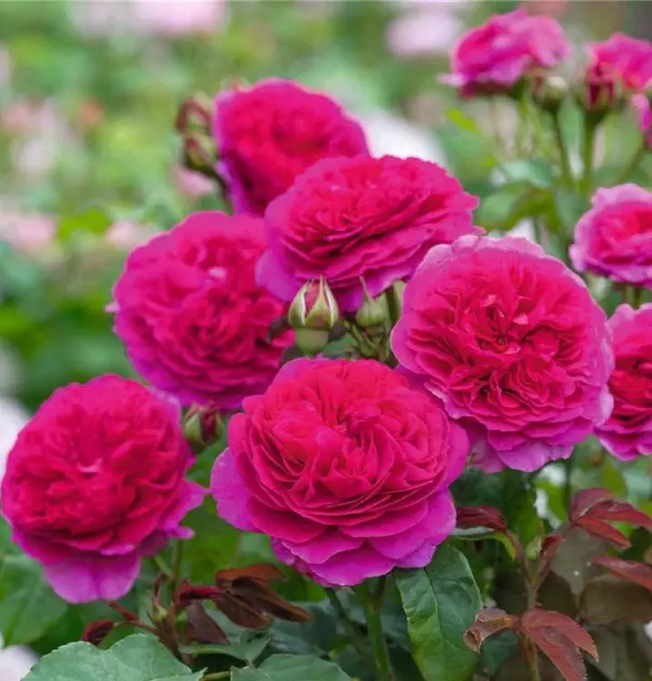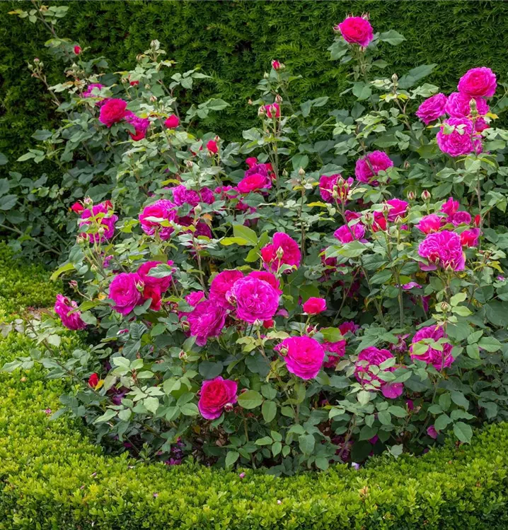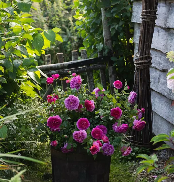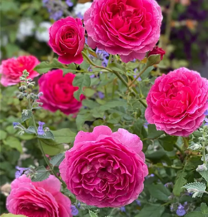 ‘Gabriel Oak’® bringt eine seltene Tiefe in den Garten: Ihre grossen, leuchtend pinkrosafarbenen Blüten sind stark gefüllt, perfekt rosettenförmig und verströmen einen betörend fruchtigen Duft mit Noten von Beeren und Zitrus. Diese englische Rose wirkt kraftvoll, lebendig und zugleich poetisch – wie ihr literarischer Namensgeber.