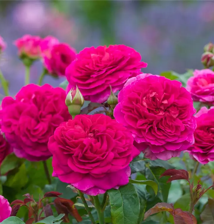 Mit einer Höhe von ca. 120–140 cm und einer Breite von ca. 100 cm entwickelt sich ‘Gabriel Oak’® zu einem eindrucksvollen, dicht buschigen Strauch. Sie blüht zuverlässig von Juni bis in den Herbst und zeigt dabei eine exzellente Blattgesundheit. Ihr aufrechter, gleichzeitig natürlicher Wuchs macht sie vielseitig einsetzbar – ob im Solitär, Duftgarten oder gemischten Rosenbeet.