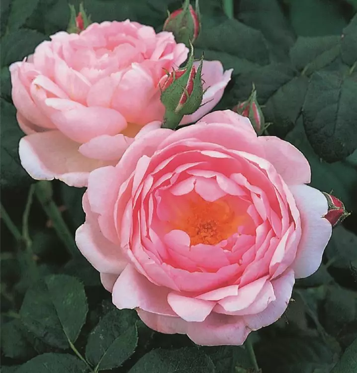 Scepter'd Isle verzaubert mit einer leichten, fast schwebenden Anmut. Die zartrosafarbenen, schalenförmigen Blüten öffnen sich sanft und geben den Blick auf goldgelbe Staubgefässe frei. Begleitet wird dieses elegante Blütenbild von einem intensiven, klassischen Myrrheduft, der dem Garten Tiefe, Ruhe und einen Hauch englischer Gartenpoesie verleiht.