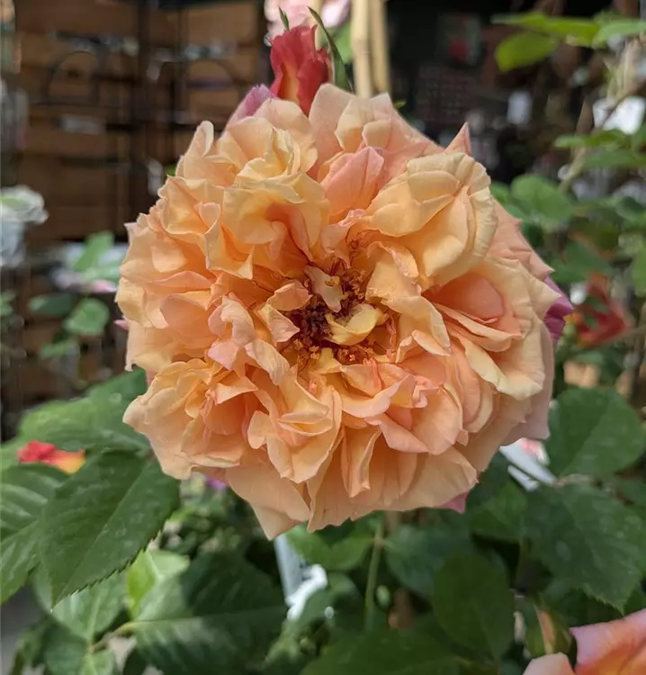Die Kletterrose Aloha® fasziniert mit grossen, stark gefuellten Blüten in warmem Apricotrosa. Ihre nostalgische Blütenform und der intensive Duft verleihen dem Garten eine besonders romantische Atmosphäre. Während der Blütezeit erscheinen zahlreiche grosse Blüten, die Rosenbögen, Pergolen oder Hauswände in ein eindrucksvolles Blütenmeer verwandeln und klassische Rosenschönheit in den Garten bringen.