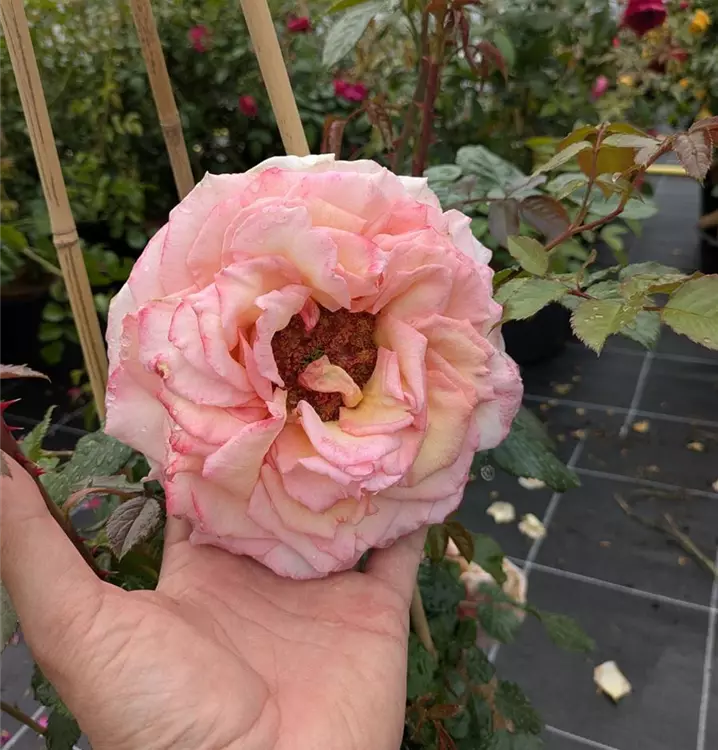 Diese Kletterrose wächst kräftig und bildet stabile, gut verzweigte Triebe. Mit einer Wuchshöhe von etwa 200–300 cm und einer Breite von rund 150–200 cm eignet sie sich hervorragend für Rankhilfen im Garten. Die grossen, stark gefuellten Blüten erscheinen über den Sommer hinweg immer wieder und verströmen einen intensiven, angenehmen Duft.