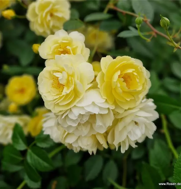 Aufrecht wachsende, morderne Kletter-Rose mit einer max. Wuchs­höhe von circa 180 cm. Mit kleinen Blüten in reichen Dolden, optimal auch für kleinere Gärten. Lemon Siluetta® eignet sich besonders für kleine Gärten, Balkone und Terrassen.