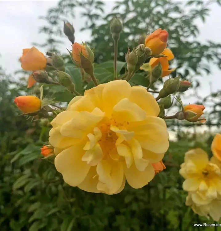 Aufrecht wachsende, morderne Kletter-Rose mit einer max. Wuchs­höhe von circa 180 cm. Blüh­freudig und reich an Dolden. Sunny Siluetta® eignet sich besonders für kleine Gärten, Balkone und Terrassen.