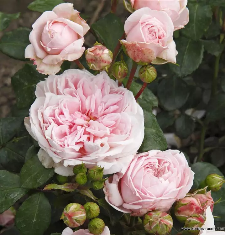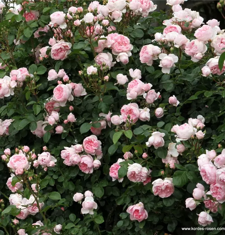 Die Strauchrose Cinderella® begeistert mit grossen, dicht gefüllten Blüten in zartem Rosa und einer besonders romantischen Ausstrahlung. Die nostalgischen Blüten erscheinen in kleinen Büscheln und sorgen während der gesamten Saison für eine üppige Blütenpracht. Durch ihren eleganten Wuchs eignet sich diese Sorte sowohl für Beete als auch für Pergolen oder Rosenbögen.