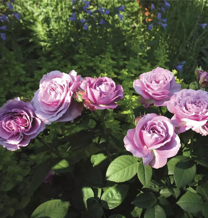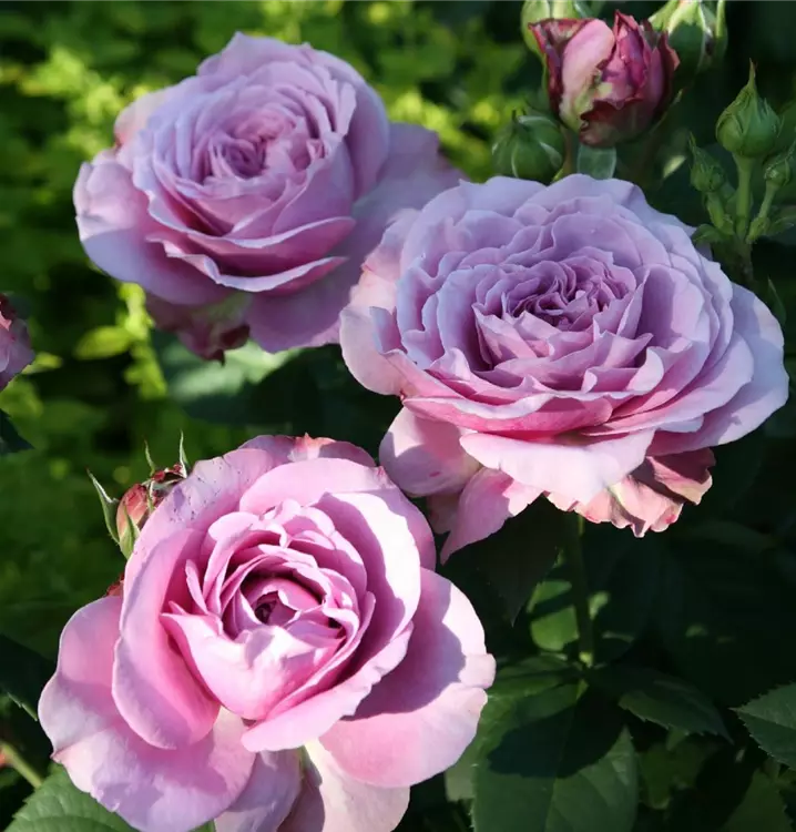 Lavender Ice® gehört zu den kompakt niedrig wachsenden, aber sehr grossblumigen Hybriden, die wir, so wie auch die Heidi Klum Rose®, bei den Patiorosen eingruppieren. In punkto Blütengrösse und Blütenbesatz gehören sie eher zu den Beetrosen. Lavender Ice® wächst sehr niedrigbuschig mit grossen, stark gefüllten Blütendolden, die mit 3 - 6 Einzelblumen stark besetzt sind. Die Einzelblüte hält sehr lange und reinigt sich nicht, weshalb die Blüten für einen besseren nächsten Flor zurückgeschnitten werden sollten. Die silbrig-lavenderfarbigen Blüten duften leicht. Eine Sorte für gute Rosenstandorte und besonders geeignet für Kübelbepflanzungen an sonniger Stelle. Grosses, hellgrünes Blatt.