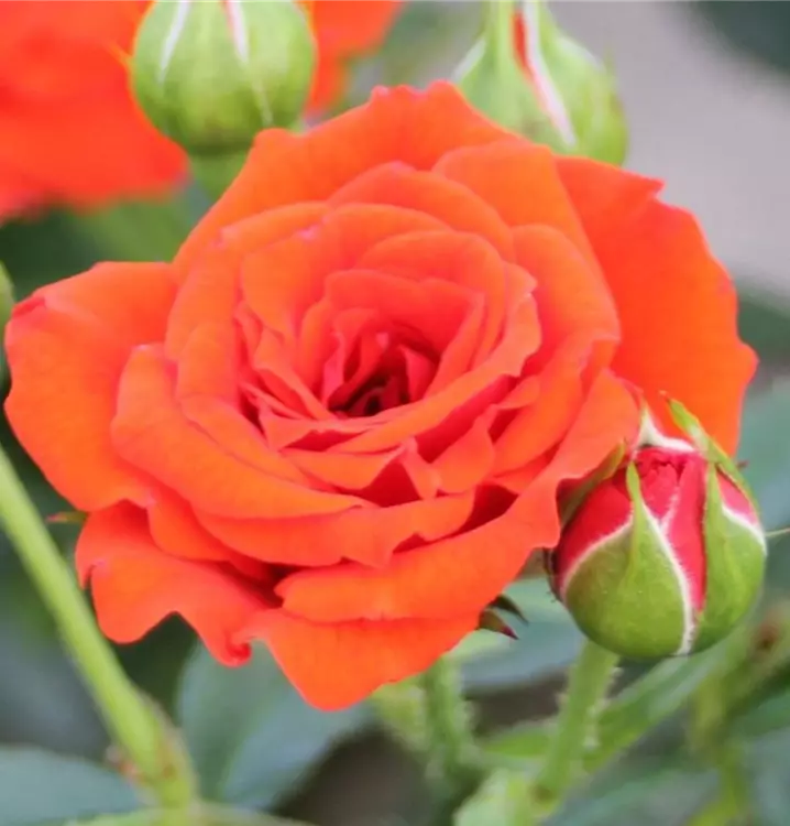 Die Miniaturrose Orange Babyflor® begeistert mit ihren intensiv orange-roten Blüten, die wie kleine Lichtpunkte im Garten wirken. Ihre kräftige Farbgebung bringt Wärme und Lebendigkeit in Beete, Töpfe oder kleine Gartenräume und setzt strahlende Akzente.