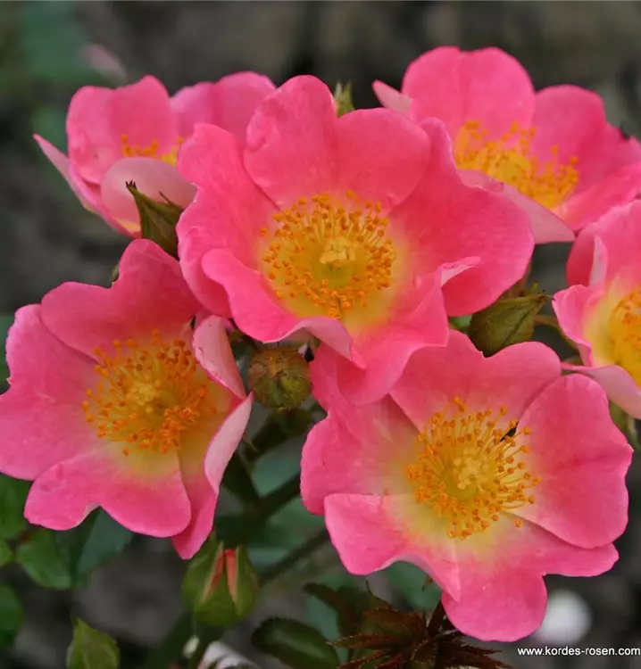 Die Miniaturrose Topolina® begeistert mit ihren zartrosa Blüten, die ein helles Zentrum und leuchtend gelbe Staubgefässe zeigen. Die einfachen Blüten wirken leicht und natürlich und bringen eine freundliche, lebendige Atmosphäre in den Garten.