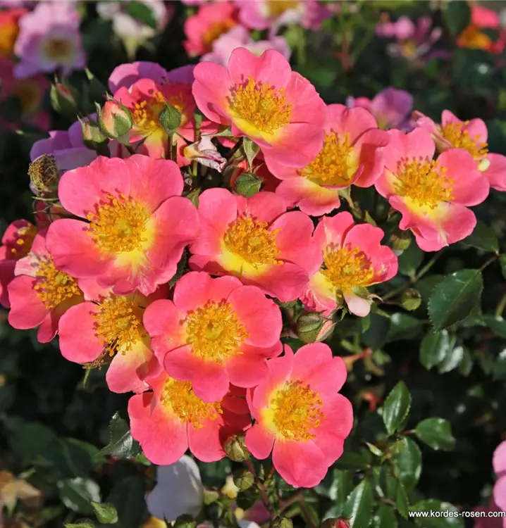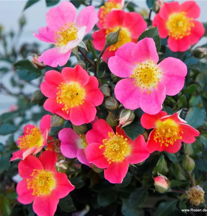 Die kleinen bis mittelgrossen Blüten erscheinen in Büscheln und zeigen sich in wiederkehrenden Schüben über die gesamte Saison hinweg. Als ADR-Rose überzeugt Topolina® durch ihre ausgezeichnete Blattgesundheit und hohe Widerstandskraft. Ihr breitbuschiger, leicht überhängender Wuchs macht sie ideal für flächige Pflanzungen.