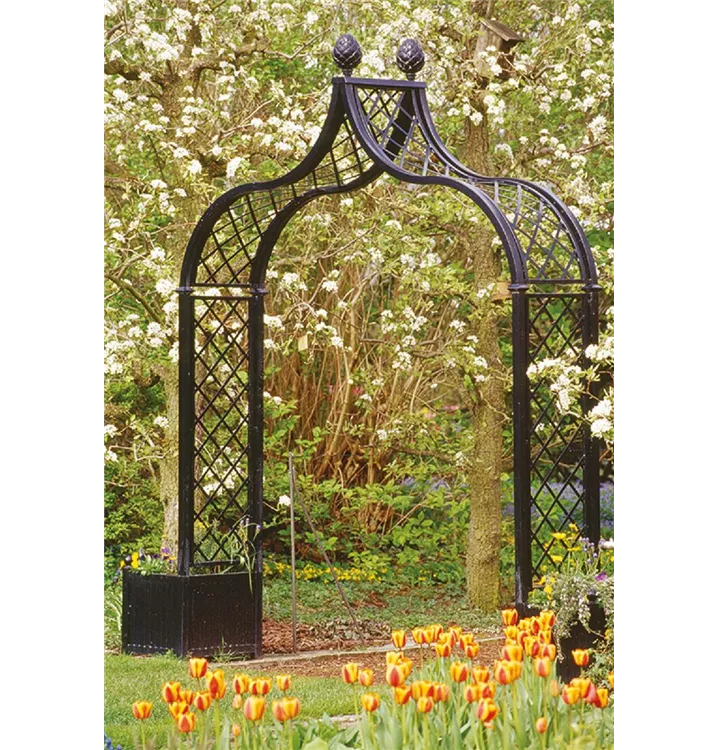 Aufgrund der Konstruktion und des Gewichtes der beiden Pflanzkübel benötigt dieser Bogen keine Verankerung. Beide Pflanzkübel je 44 x 52 x 51 cm werden mit einem herausnehmbaren Pflanzeinsatz aus Plastik geliefert.