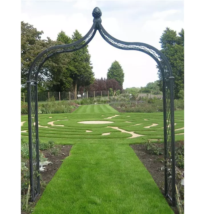 Diese schweren, freistehenden Rosenbögen prunken mit einer seit dem "fin de siècle" nicht mehr erreichten Kunst der Verarbeitung. Ihre leicht geschwungene Form erinnert an gotische Fensterbögen. Dieser Stil war zu Zeiten Königin Victorias höchst populär. Noch heute finden sich im südenglischen Seebad Brighton die schönsten Beispiele dieser Architektur.
