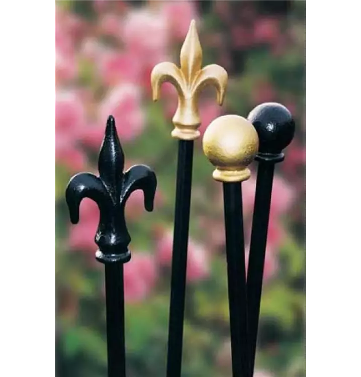 Stäbe bestehen aus 1,5 cm Stahlrohr, sind feuerverzinkt und pulverbeschichtet in schwarz. Die Zierabschlüsse sind aus massiven Gusseisen. Mitgeliefert ist eine 40 cm lange verzinkte Einschlaghülse für maximale Standfestigkeit.