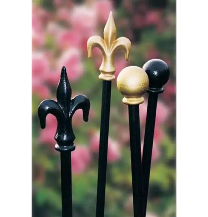 Stäbe bestehen aus 1,5 cm Stahlrohr, sind feuerverzinkt und pulverbeschichtet in schwarz. Die Zierabschlüsse sind aus massiven Gusseisen. Mitgeliefert ist eine 40 cm lange verzinkte Einschlaghülse für maximale Standfestigkeit.