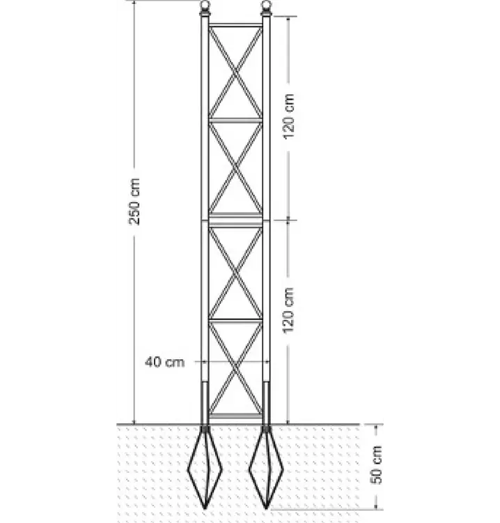 In einem Stück gefertigt! Rahmen aus 4 cm Stahlprofilrohr, Geflecht aus 2 cm Stahlband, feuerverzinkt und pulverbeschichtet in schwarz. Bodenanker aus feuerverzinktem Stahl. Andere Farben auf Anfrage.