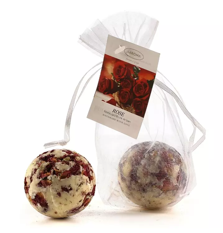 Badekugel Rose 50g Ø 50mm im Organzasäckchen