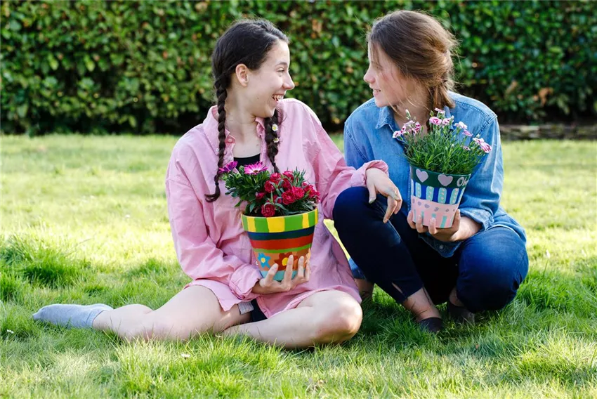 Kinder mit bemaltem Übertopf Insbesondere Besitzer von Steingarten-Pflanzen, aber auch die meisten Hobbygärtner im Allgemeinen, können eigentlich nie genug Pflanzgefässe haben. Auf dem Balkon, der Terrasse oder dem Eingangsbereich des Hauses können rustikale Pflanztöpfe für den letzten Pfiff sorgen. Diese lassen sich auch selber machen und stellen somit ein ideales Geschenk für alle Gartenliebhaber dar, die den Landhausstil mögen.