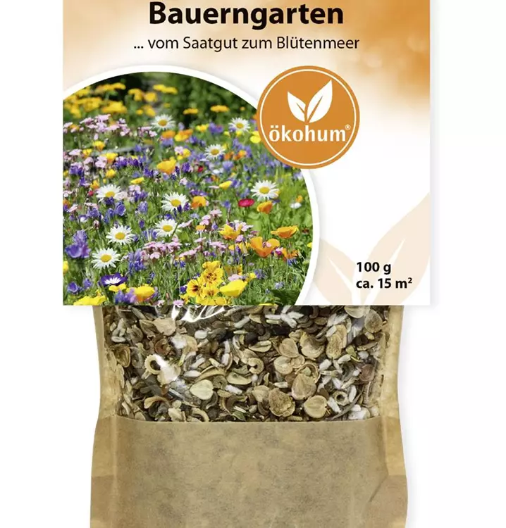 Diese einjährige Blühmischung enthält bis zu 35 Arten: Seidenmohn, Blauglöckchen, Schlafmützchen, Hainblumen, Schleierkraut, Spiegeleiblume, Duftresede, Sperrkraut, Moldawische Melisse, Kapuzinerkresse, Bartblumen, Trichterwinden, Prunkwinden, Mittagsblumen, Buschwinden, niedrige Schmuckkörbchen, niedrige Zinnien, Leimkraut und viele mehr.