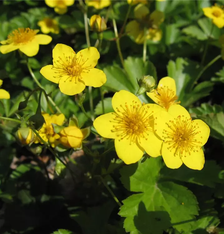 Wie ein Teppich aus Sonnenstrahlen breitet sich die Waldsteinia ternata, auch Goldbeere genannt, im Garten aus. Ihre leuchtend gelben Blüten bringen Licht in schattige Beete und sorgen für eine heitere Stimmung, wo andere Pflanzen kaum Farbe wagen.