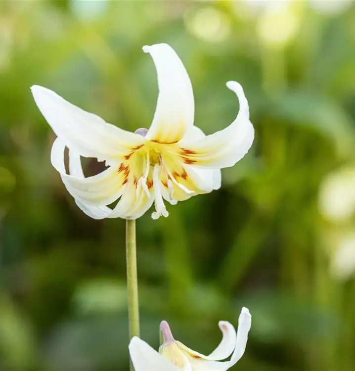 Die Erythronium revolutum ´White Beauty´, auch bekannt als Hundszahn-Lilie, gedeiht am besten an halbschattigen bis schattigen, waldartigen Standorten. Nach Erhalt sollten die Zwiebeln sofort in einer Tiefe von 8-10 cm gepflanzt werden, da sie leicht austrocknen können. Diese Pflanze bringt mit ihren schönen weissen Blüten eine elegante Note in schattige Bereiche des Gartens.