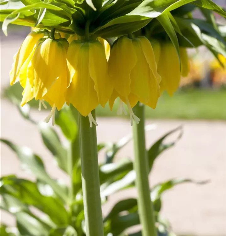 Die Fritillaria imperialis ´Lutea Maxima´, auch bekannt als Kaiserkrone, beeindruckt mit ihrer majestätischen Erscheinung. Die leuchtend gelben Blüten hängen an imposanten, aufrechten Stängeln und verleihen Ihrem Garten königlichen Glanz. Diese Pflanze bevorzugt sonnige Standorte mit gut durchlässigem Boden. Pflanzen Sie die Zwiebeln im Herbst in einer Tiefe von etwa 15 cm. Die Kaiserkrone ist nicht nur eine Augenweide, sondern zieht auch Bienen und Schmetterlinge an.